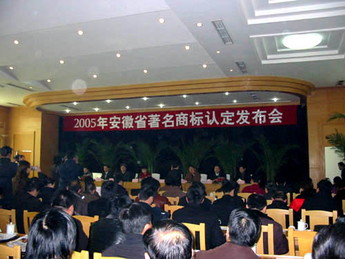 2006年1月10日上午,2005年安徽省著名商標認定發(fā)布會在合肥八一賓館隆重舉行,省政府文海英副省長及省工商局領(lǐng)導出席本次發(fā)布會。根據(jù)《安徽省著名商標認定與管理辦法》的規(guī)定,由安徽省著名商標評審委員會審議,并經(jīng)安徽省工商局局長辦公會議審定,我公司“中德”等111件商標為2005年安徽省著名商標(其中馬鞍山市共有5件商標入選),有效期自2006年1月起至2009年12月底止。